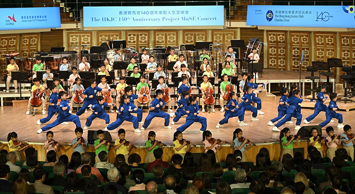 課外活動有助兒童探索個人興趣、擴闊視野,惟基層家庭或難以負擔。香港賽馬會慈善信託基金審批撥捐超過四億港元策劃及捐助「賽馬會樂動人生計劃」,為就讀低收入地區小學的學童免費提供優質、度身制定的音樂和體育活動。計劃於今天(4月17日)假香港文化中心舉行啟動儀式暨香港賽馬會140週年樂動人生音樂會,匯聚參與計劃的學童,以及其他馬會捐助項目所培育的音樂人才同場演出。