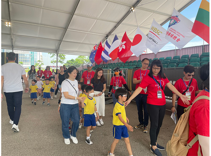 The CARE@hkjc Volunteer Team seized this opportunity and mobilised nearly 20 volunteers to assist with guided tour activities on 7 and 10 October 2024. The volunteers were responsible for distributing tour materials and accompanying participants throughout the tours and match viewings. Conducted by Baseball5 Promotion Ambassadors, these tours allowed participants to immerse themselves in the excitement and enjoyment of top-level Baseball5 matches.