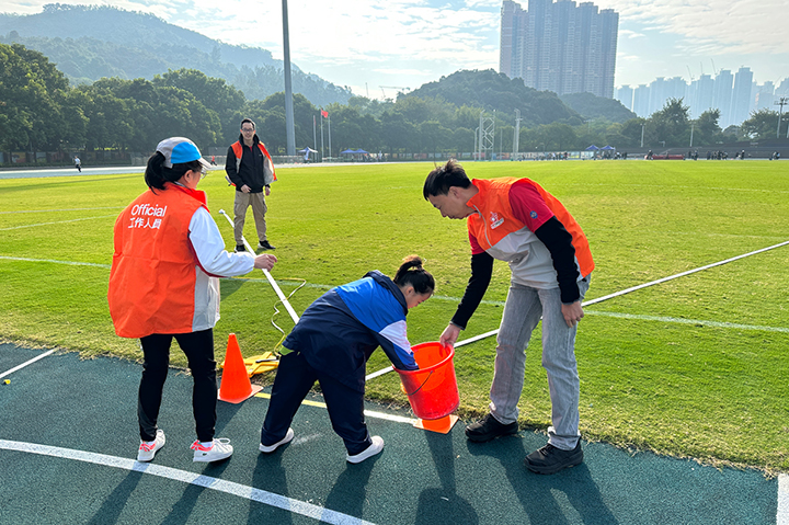 The Club mobilised 34 members of CARE@hkjc Volunteer Team to assist in the event, responsible for venue setup, scorekeeping and crowd management. Despite the freezing weather on the day, the volunteers worked tirelessly to foster a joyful and vibrant atmosphere for over 200 students from eight local special schools. Freely Cheng, Head of External Affairs, Sally Tse, Executive Manager, External Affairs and Vivian Kong, Assistant Manager, External Affairs of The Hong Kong Jockey Club were also there to cheer on the students, kick off the relay races and present medals, bringing the competition’s atmosphere to a climax.