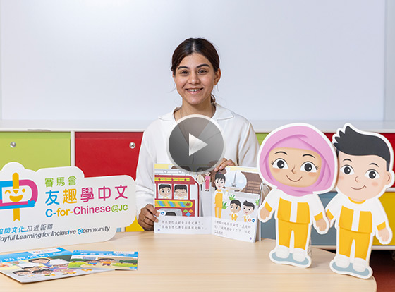 在「賽馬會友趣學中文」計劃的支持下,一名巴基斯坦裔女生成為了多元文化教學助理,協助非華語學生學好中文,融入香港生活。