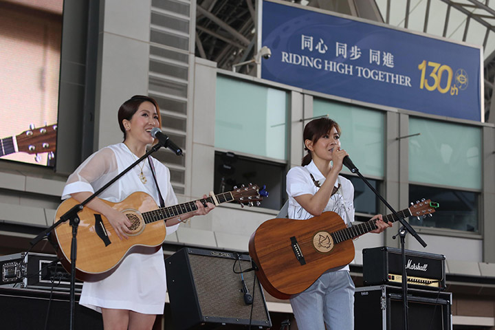 Local bands Mr. and Robynn & Kendy inspire the audience with their heartfelt performances of the Club's 130th Anniversary theme song, "Progressing Together".